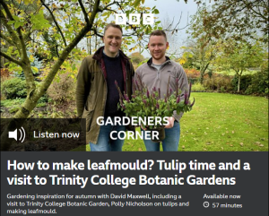 The hugely popular BBC Radio Ulster Gardeners’ Corner visited the gardens early Last November. The programme’s presenter, David Maxwell, talked to Dr Steve Waldren, Curator, and Mick McCann and Liz Bird, long-time gardeners, about the garden’s collections, its role in research, conservation and outreach today, and the inspiration the gardens provide through the seasons.
