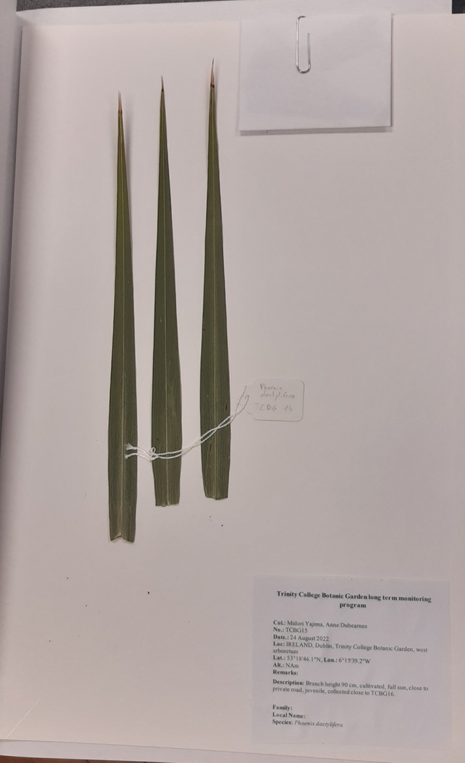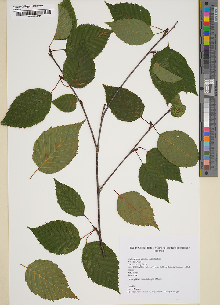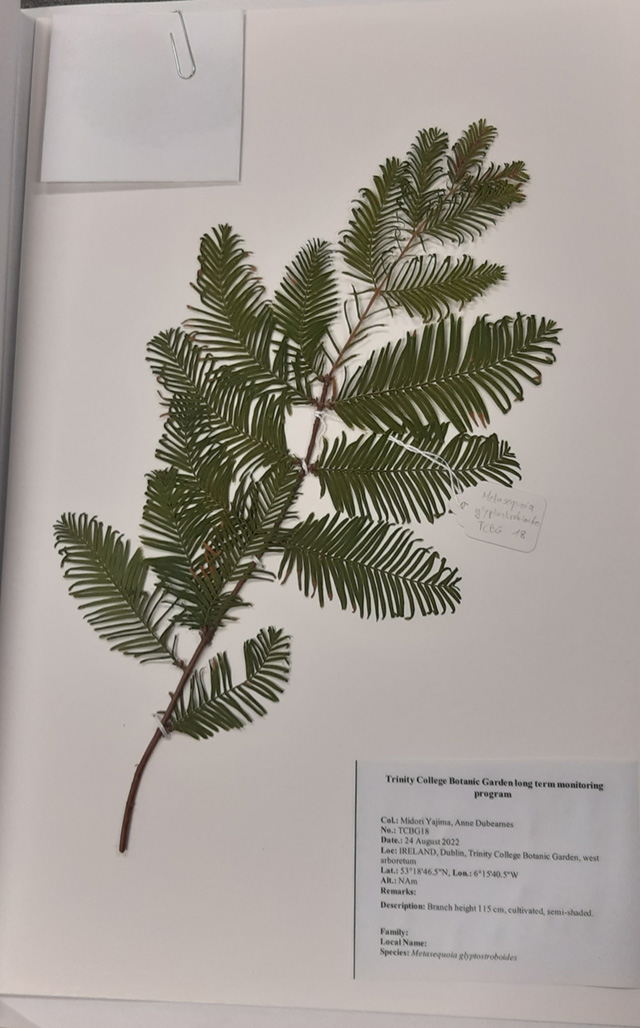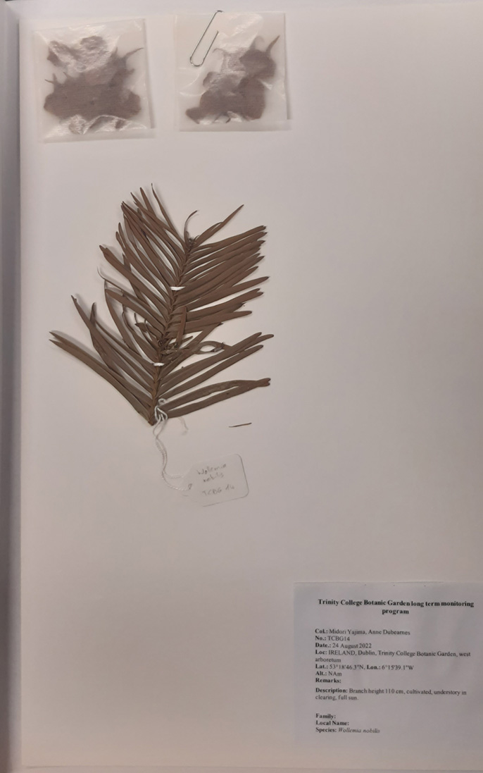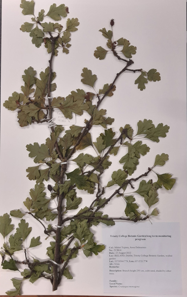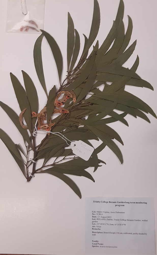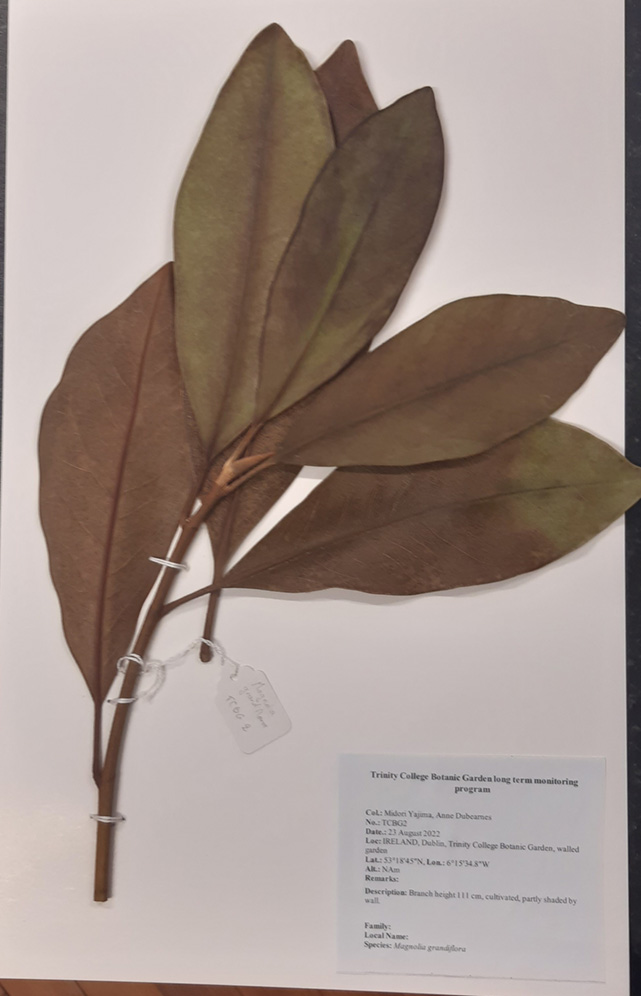 Below are examples of the herbarium specimens of the Witness Trees which were sampled, pressed and dried in 2022. The herbarium specimens are listed alphabetically, and you can view more details about each by clicking on the image or species name. The images are high resolution scans of the herbarium specimens showing the leaves, reproductive structures and detailed scientific labels. Some specimens have additional envelopes containing plants parts such as seeds or additional leaves for future study.